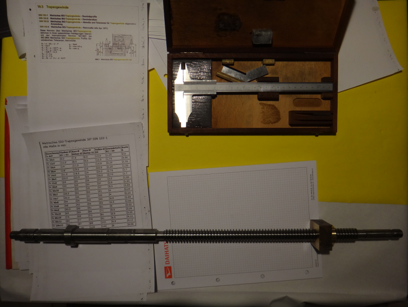 Da diese Planspindel ein heute unübliches Tr5 x 20Links aufweist, habe ich die Gewindewerte von TR5x28 und TR5x24 genommen und die Abmessungen für das TR5x20 runtergerechnet.