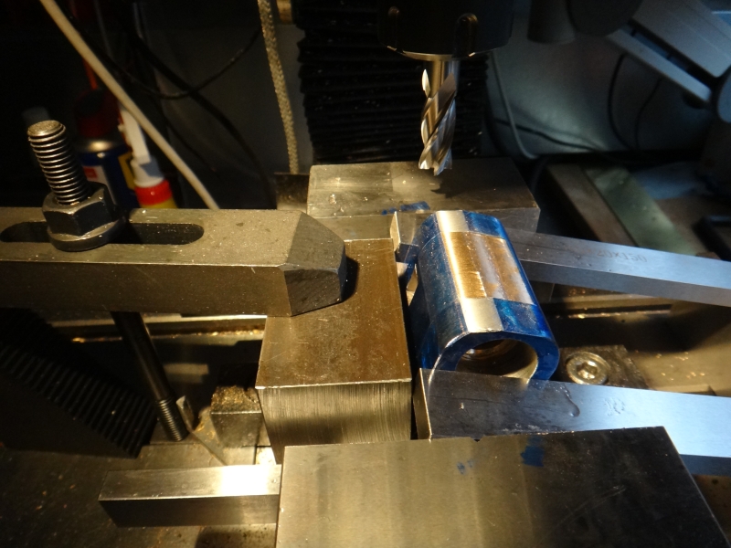 Im Schraubstock war dann die Angelegenheit mittels Kupferdurchschlag und Hammer, in wenigen Schlägen lösbar. Der Grund für das Verklemmen war der zu knapp bemessene Kerlochdurchmesser, auf der Schaublin habe ich das Kernloch der Mutter um 0.3mm erweitert, nun liess sich die Spindel mit relativ geringem Aufwand eindrehen.