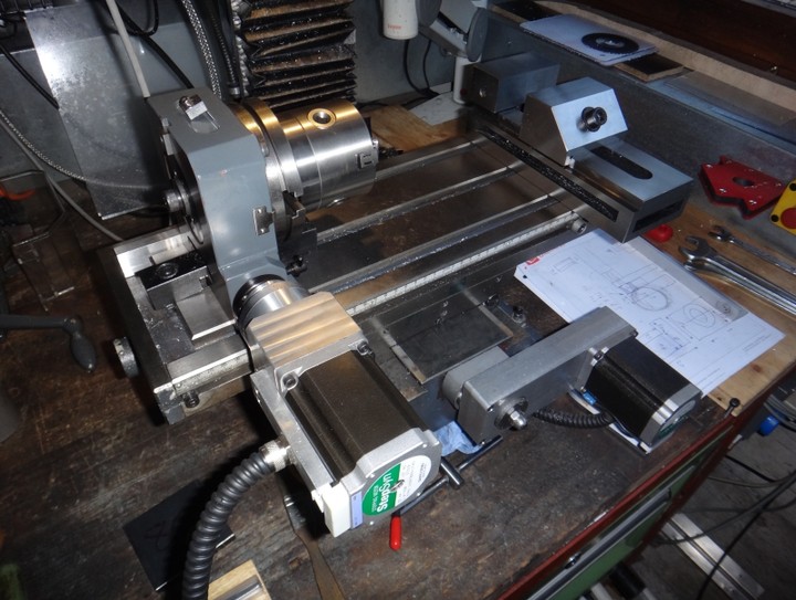 Schon lange regte sich der Wunsch nach einem gesteuerten Rundtisch, alles Material wurde schon zum Zeitpunkt vom BF20 CNC-Umbau angeschafft, aber erst jetzt wurde der Fall 'akut'. Denn ich hatte für die kleine Schaublien102 eine neue MK1 Pinole nachgebaut. Dieser musste nun noch ein 70mm Langer Masstab eingraviert werden, dies geht nun mal nur mit Hilfe einer CNC gesteuerten Rundachse. Der Umbau der Rundtisches wird auf der Seite von Christoph Selig eingehend beschrieben.